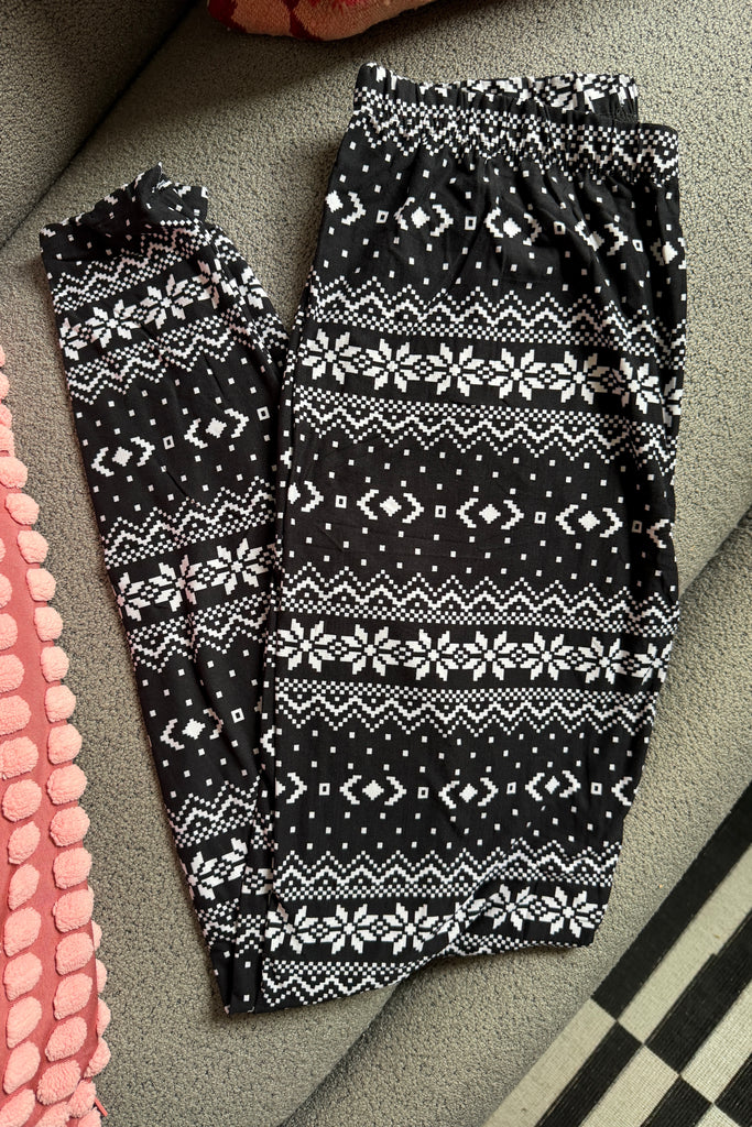 Nordic Christmas Black/White Knit Print CURVY SIZE Leggings
